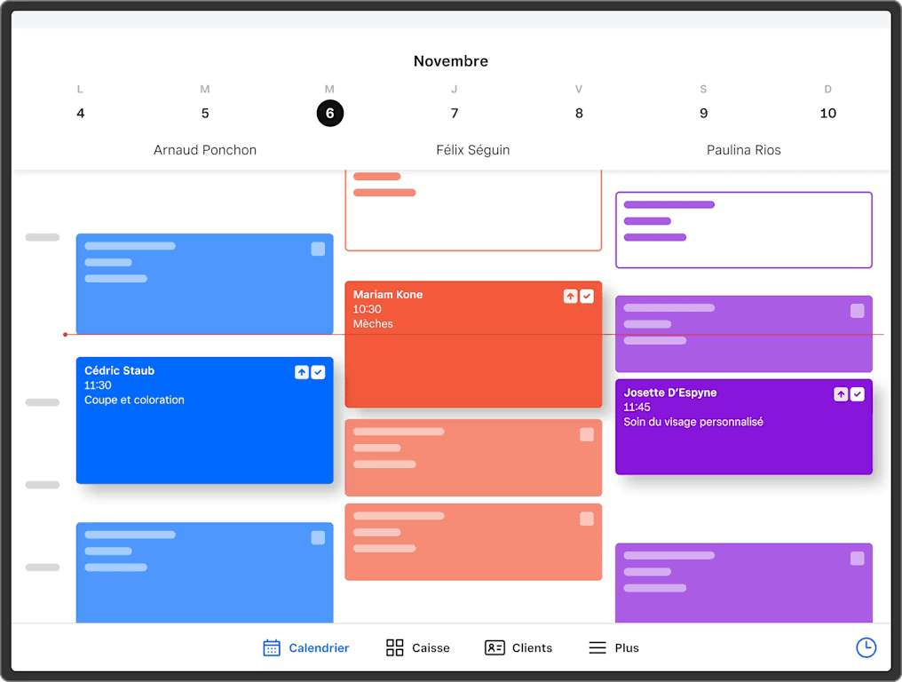 Pendant que vous vous concentrez sur vos clients, Rendez-vous Square œuvre en coulisse pour vous aider à gérer votre planning, accepter les paiements et responsabiliser vos employés.